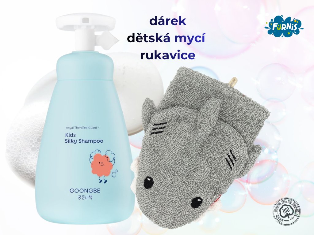 Objevte prémiovou korejskou péči s GOONGBE Kids Hedvábný šampon pro děti a ručně šitou mycí rukavici ze 100 % BIO organické bavlny značky Fürnis získá vaše dítě jako dárek*