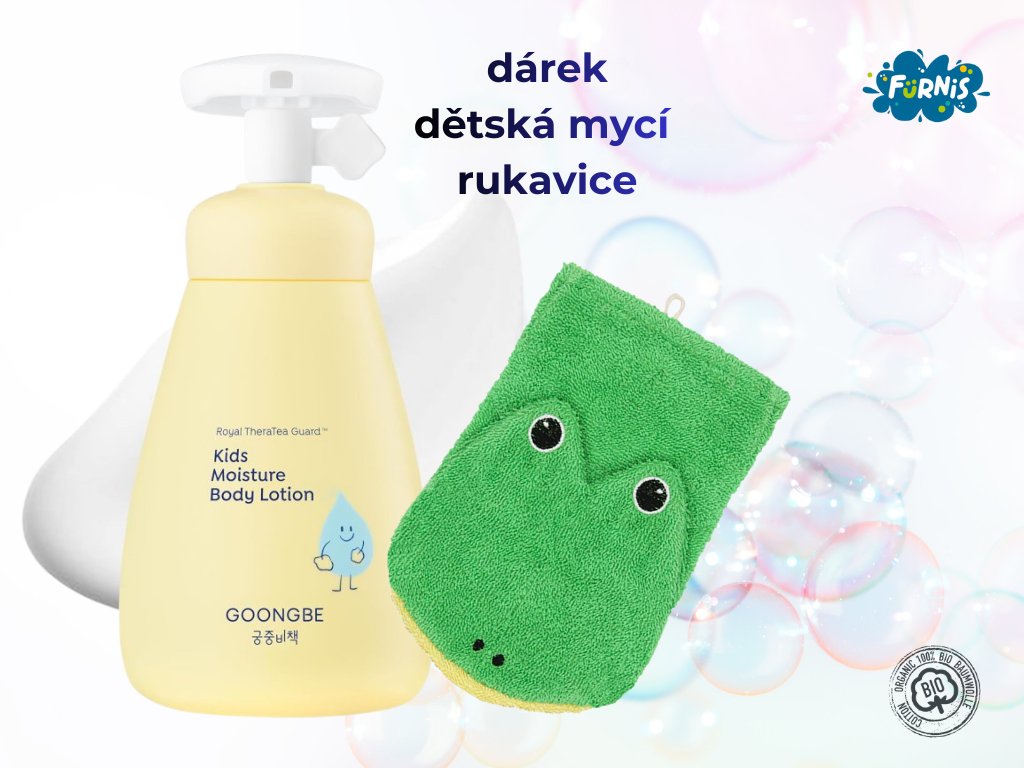 Objevte prémiovou korejskou péči s GOONGBE Kids Hydratační tělové mléko a ručně šitou mycí rukavici ze 100 % BIO organické bavlny značky Fürnis získá vaše dítě jako dárek*