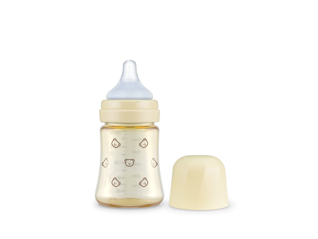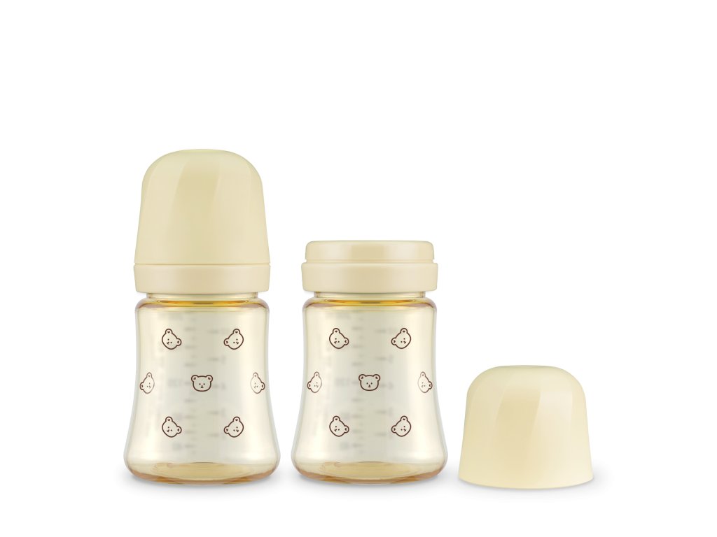 GROSMIMI PPSU kojenecká láhev 200 ml s ergonomickým dudlíkem Stage 1 a systémem proti kolice. Materiál PPSU medicínské třídy bez mikroplastů, široké hrdlo pro snadné čištění. Kompatibilní se systémem Straw Cup - roste s vaším dítětem barva Butter – máslová