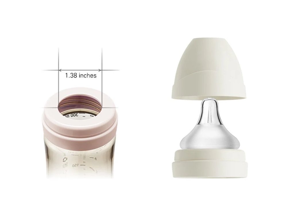 Láhev má široké hrdlo (4,7 cm průměr), které výrazně usnadňuje snadné plnění mléka nebo stravy bez rozlití, důkladné čištění - dostanete se všude i bez speciálních kartáčků, rychlé sestavení a rozebrání všech částí a je kompatibilní s jinými značkami.