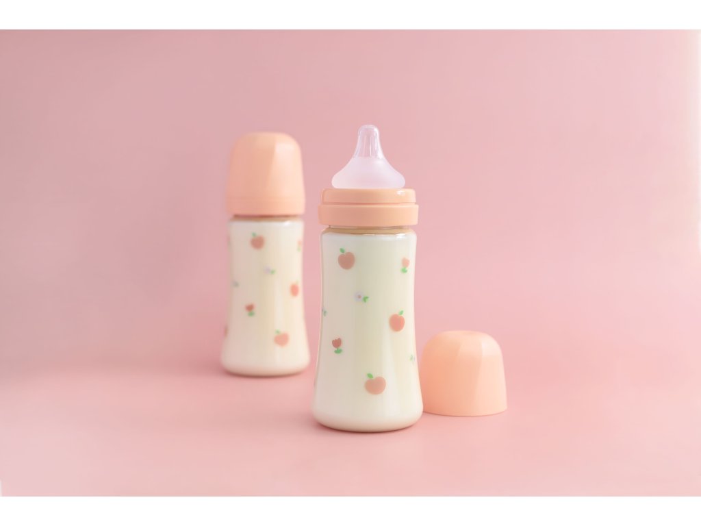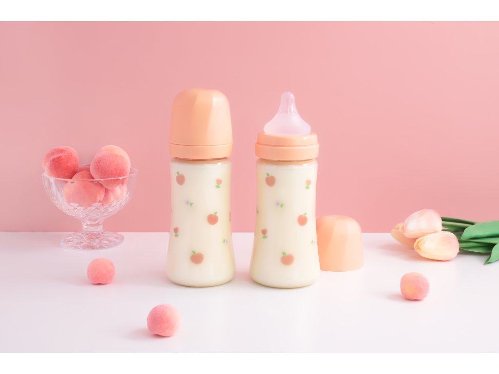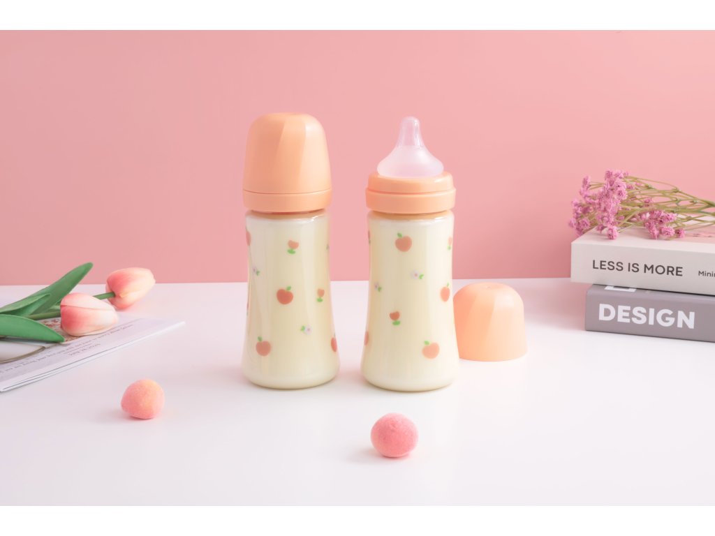 GROSMIMI PPSU kojenecká láhev Peach Flower 300 ml s dudlíkem velikosti 2 – střední průtok