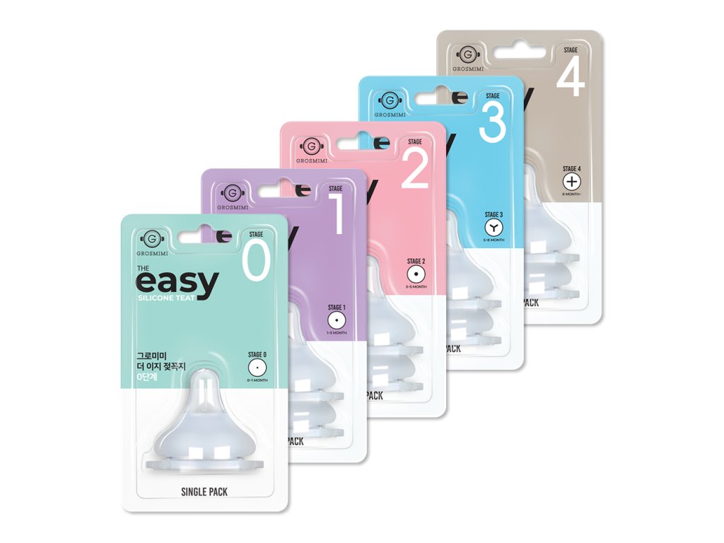 The Easy Nipple jsou dostupné ve 5 stupních podle věku a potřeb dítěte. Stage 0 - 0-1 měsíc (Novorozenec) - JEDNOTLIVÉ BALENÍ: Extra měkký dudlík speciálně pro novorozence, minimální průtok pro nejmenší miminka, balení obsahuje 1 kus (ostatní Stage 1-4 obsahují 2 kusy), ideální pro první dny života a kombinované kojení. Stage 1 - 1-3 měsíce (MĚKKÝ) - DVOJITÉ BALENÍ: Měkký dudlík s pomalým průtokem, ideální pro malá miminka a kombinované kojení, zabraňuje přejídání a kolikám, součást balení GROSMIMI láhev 200ml (6oz), balení obsahuje 2 kusy. Stage 2 - 3-5 měsíců (STŘEDNÍ) - DVOJITÉ BALENÍ: Střední průtok pro rostoucí miminka, vhodný pro větší porce mléka, součást balení GROSMIMI láhev 300ml (10oz), balení obsahuje 2 kusy. Stage 3 - 5-8 měsíců (Y-CUT) - DVOJITÉ BALENÍ: Y-řez pro hrubší kašovité jídlo, ideální při přechodu na příkrmy, větší průtok bez náhlého vylití, balení obsahuje 2 kusy. Stage 4 - 8+ měsíců (HARD / CROSS CUT) - DVOJITÉ BALENÍ: Křížový řez (+CUT) pro největší průtok, odolnější dudlík pro děti s denticí, vhodný pro starší děti, balení obsahuje 2 kusy.