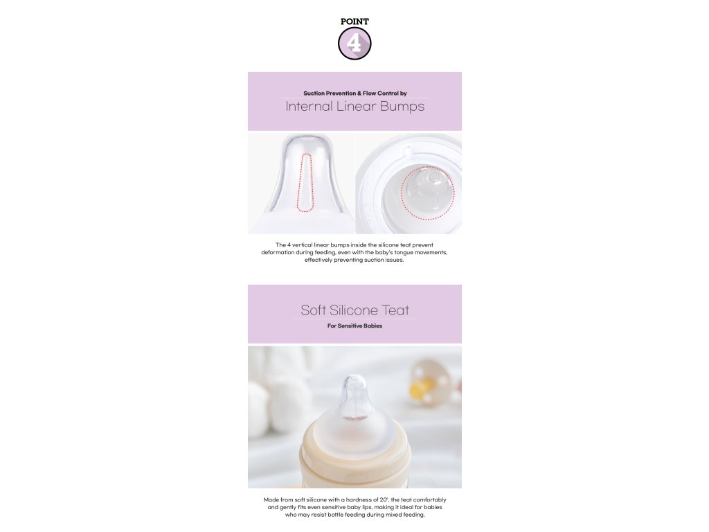Náhradní silikonové dudlíky GROSMIMI The Easy Nipple jsou navrženy speciálně pro GROSMIMI PPSU kojenecké lahve. Vyrobené z prémiového platinového silikónu medical-grade kvality s pokročilým anti-colic systémem a ergonomickým tvarem, který napodobuje přirozené kojení.