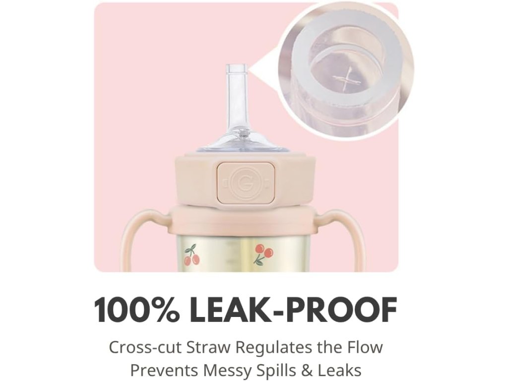 Hlavní vlastnosti: Medical-grade PPSU bez mikroplastů a BPA, patentovaná '+CUT' anti-leak technologie - nevyteče, 360° otočné ergonomické rukojeti, platinové silikonové brčko odolné kousání, One Touch flip-top víčko, vyrobeno v Koreji.